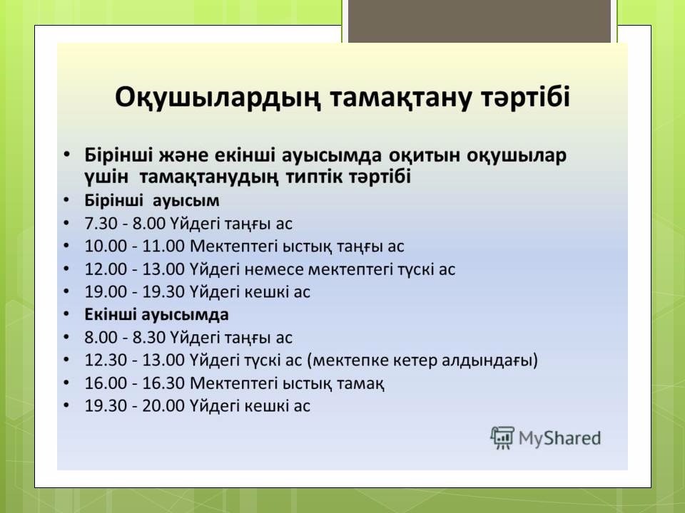 - Бірінші, тамақтану барысында тәуліктік кесте белгілеу.